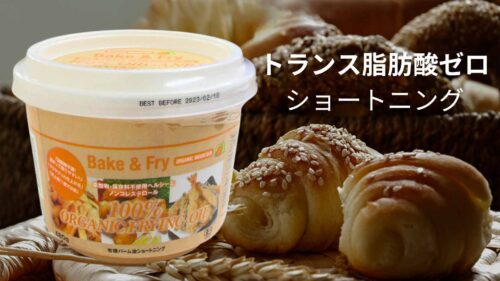 トランス脂肪酸を気にされる方は、こちらのようなフリーなショートニングを使うといいですよ。この他にもオーガニックのショートニングもあります。