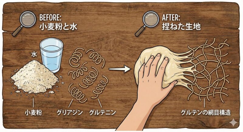 しかし、全体をイラストとして捉えると、非常によくできており、グルテンがどんなものか?なにをどうしたら作られるのか?わかり易く表現されています。直感的に伝わってくるイラストです。